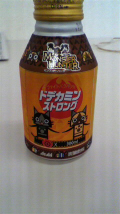 さて、少し前に手に入れたドデカミン、モンハンパッケージ!! いやー、灯台下暗し。まさかウチの店の自販機に入ってるとは思いもしませんでした・・・、わお。