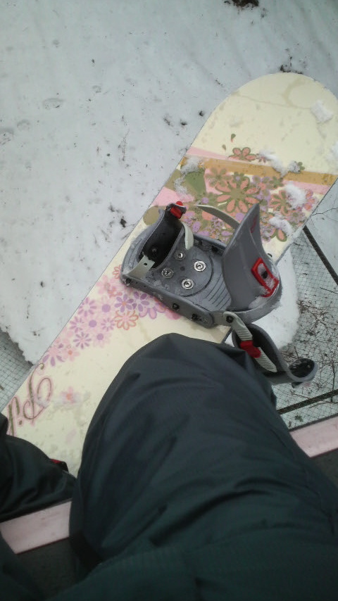 あ、借りたボードが可愛くってついついリフト中に写メってみたんです。では、寝ます!
