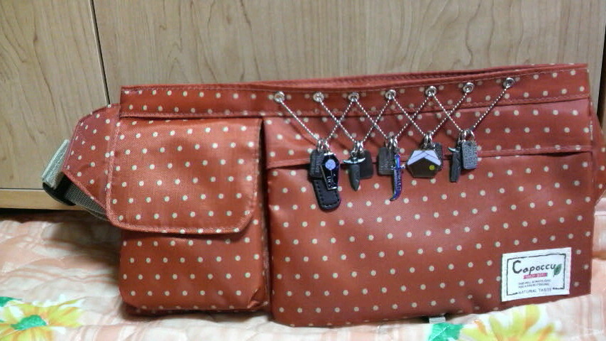 で、仕上げたのが写真の品~っ。あぁ~、自己満足、でも良いの、お気に入りになったから!腰鞄の色も、らしくオレンジ~!もちろん、インテで使います!