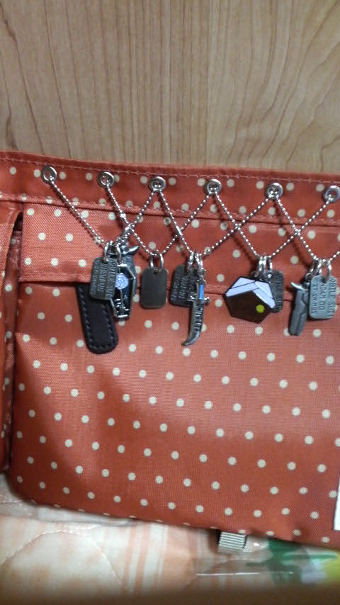 で、店に並んでたバラを幾つか買って帰りましたー。ダブりにキュリちゃんとアレたんがいなかったけど、ほぼマイスター関係がダブったんで、兼ねてから計画していた、ダブりは鞄に付けよう!を発動~。
