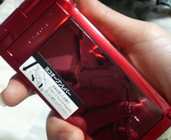 見てっ! この輝きっ!! 分っかるかなぁ~? このディスプレイんトコ、鏡並みにキレイです。前の携帯が写ってるの見える?! 驚いた~ぁ。